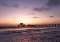 Magical sunset and beautiful waves on Manhattan Beach in California