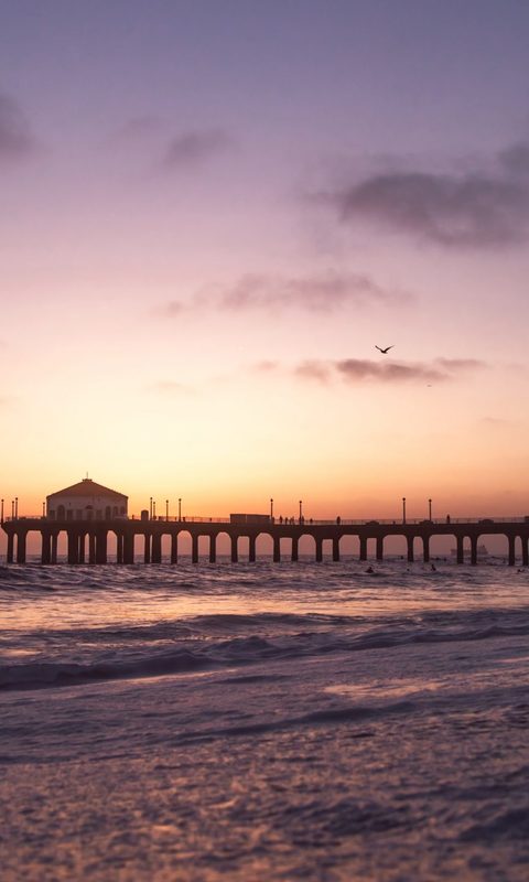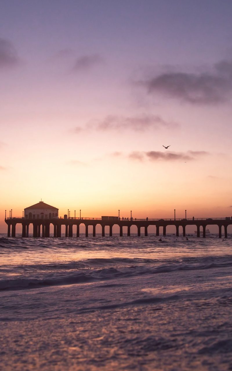 This stunning wallpaper shows Manhattan Beach, a beautiful city in southwestern Los Angeles County, California. Manhattan Beach is one of the three Beach Cities that make up the South Bay region of Los Angeles County. Whether you are a fan of long beach walks or water sports, this is a perfect place for you! Because of the beautiful sunny pier and magical waves, Manhattan Beach is a mecca for surf, sun, and relaxation. The most beautiful spots of Manhattan Beach are gorgeous beaches with soft sand and clear ocean. One of them is perfectly captured on this wallpaper! Enjoy the picture of a magical sunset and beautiful waves on Manhattan Beach in California!