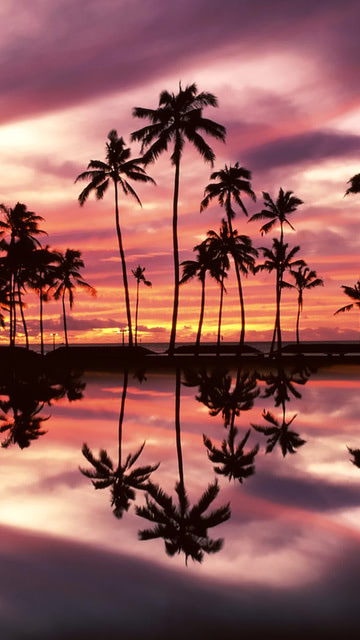 It seems like the ideal place to go if you wish to have a vacation that allows you some time to rest and enjoy the views. The attractive colors in the sky set against the palm trees has a soothing effect on your soul and the reflection of the palm trees in the water depicts how calm and still the water really is there.