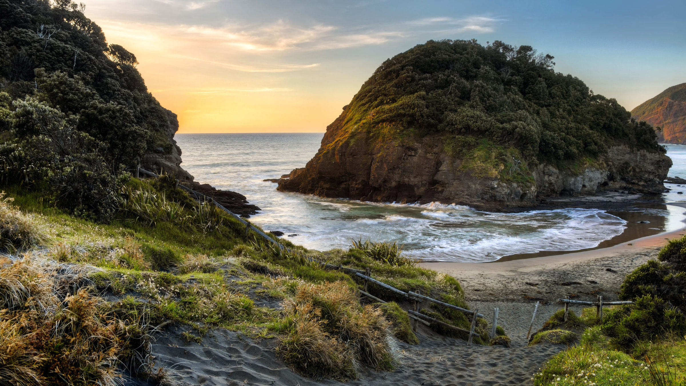 This beautiful wallpaper shows O’Neill Bay in New Zealand, a perfect place for surfers and adrenaline lovers. O’Neill Bay is also a perfect fishing spot, and it can only be reached on foot from Bethells Beach. This place is known for its exposed and turbulent nature, so it is perfect for everyone who loves surfing and rock fishing. Because O’Neill Bay in New Zealand is quite isolated, this can be a perfect choice for relaxing and enjoying the wild nature.
