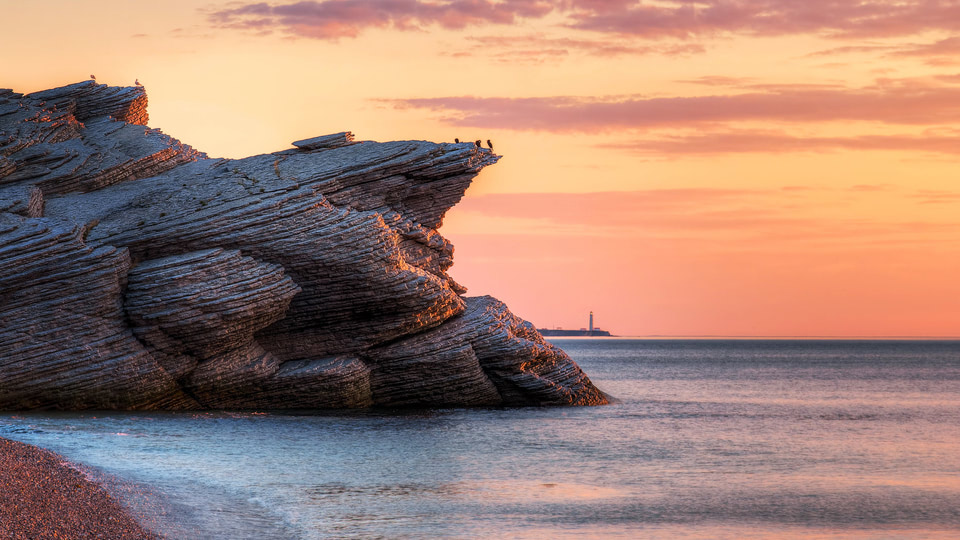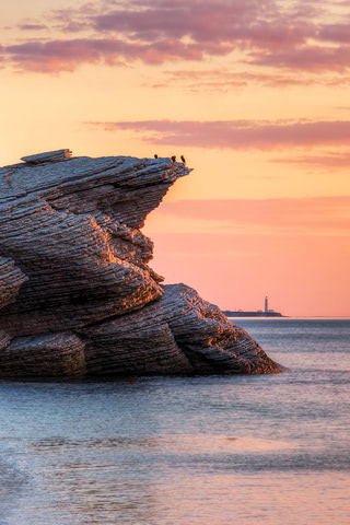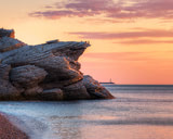 Tranquil sunset over the cliffs of eastern Quebec in Cap Bon Ami, Canada