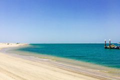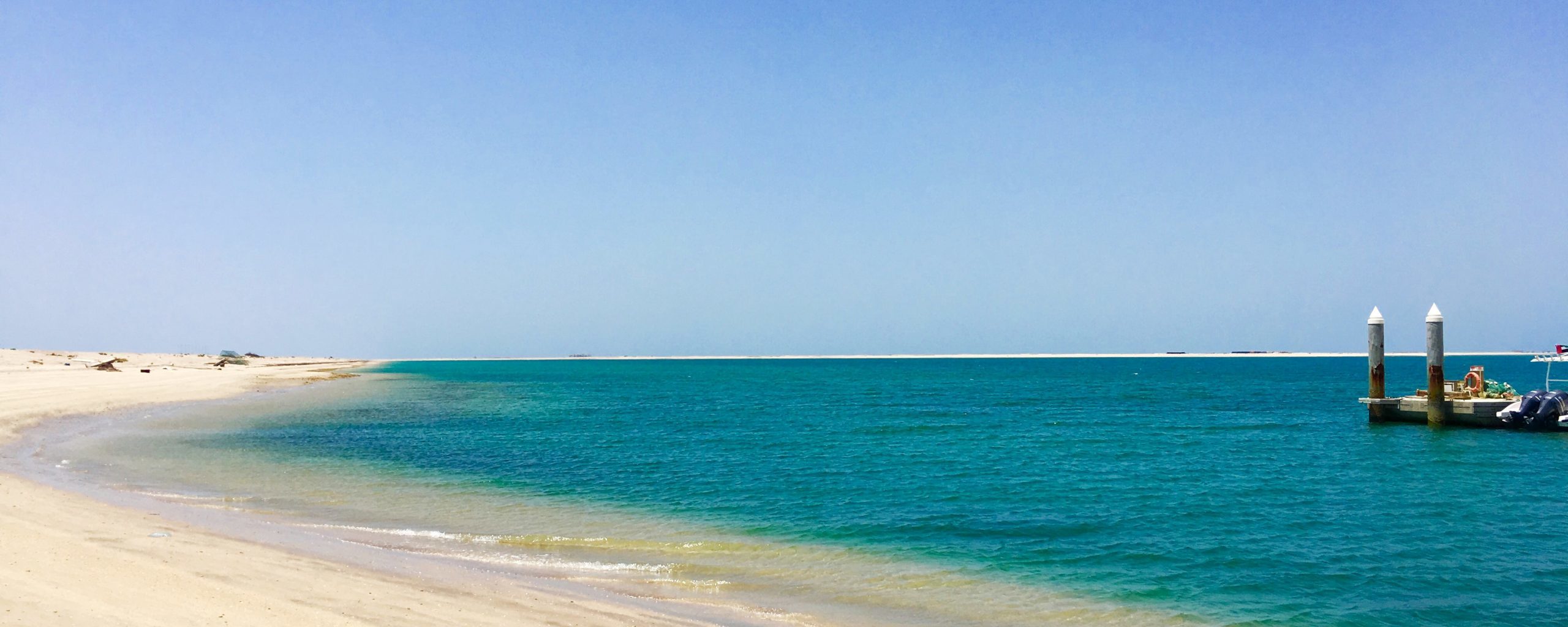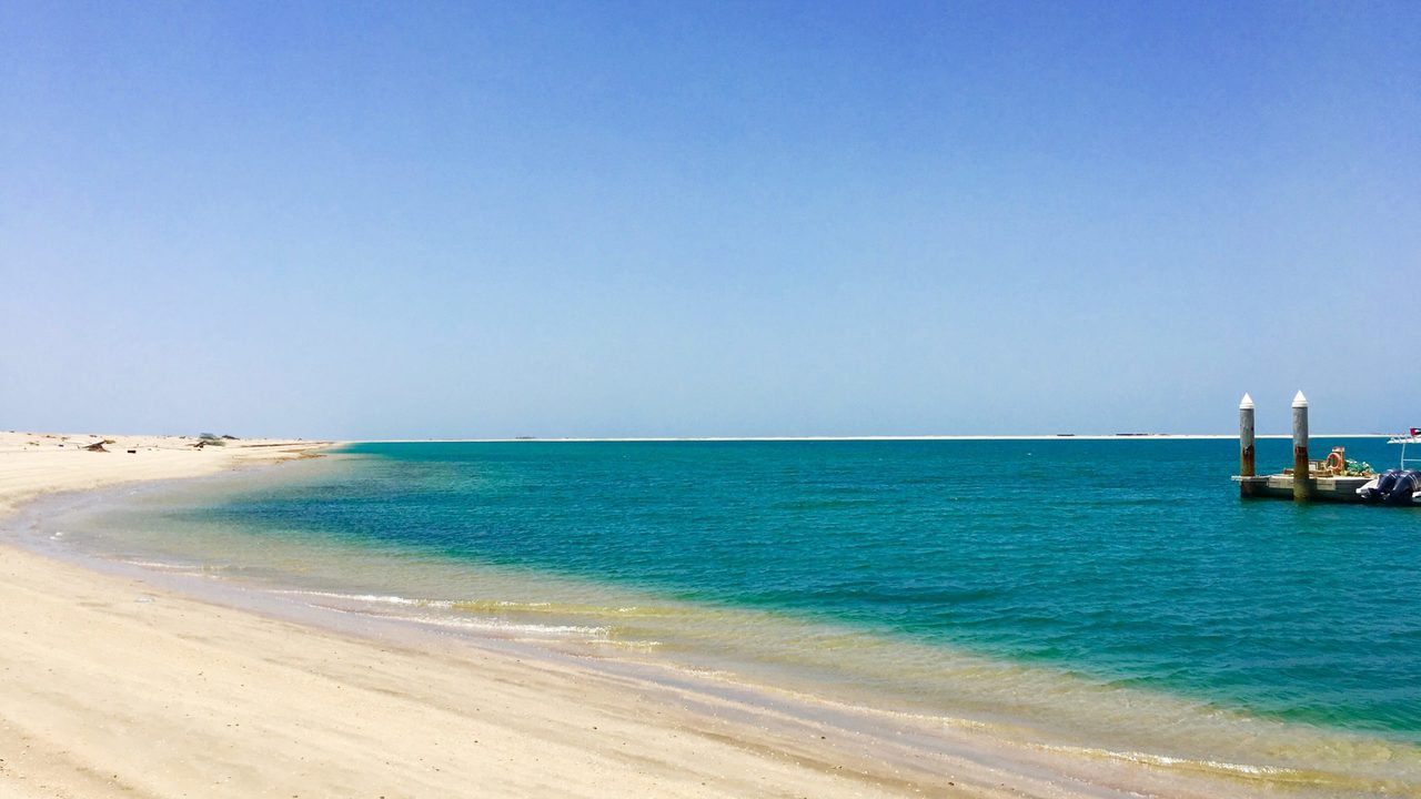 Turquoise waters and soft white sand of Dubai beach