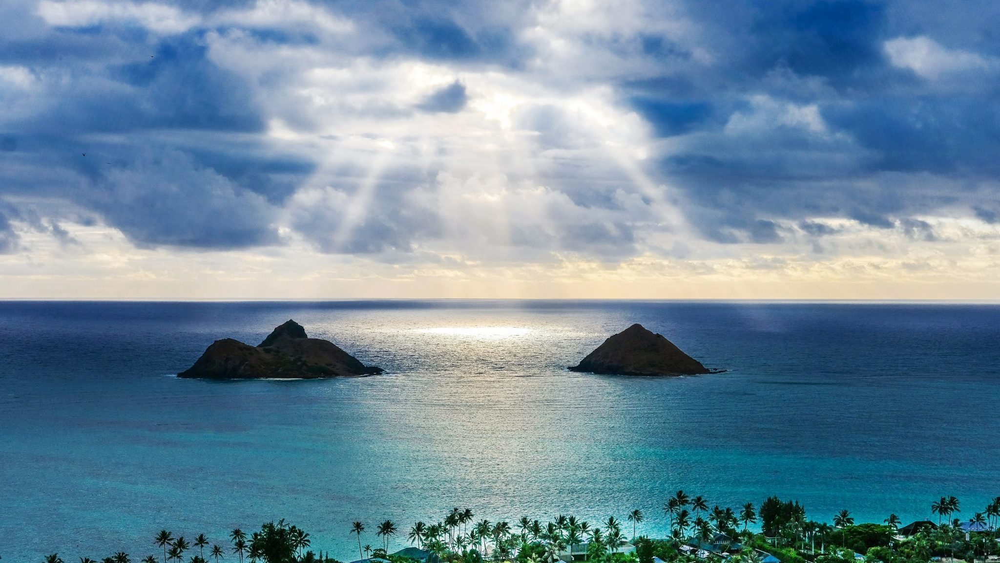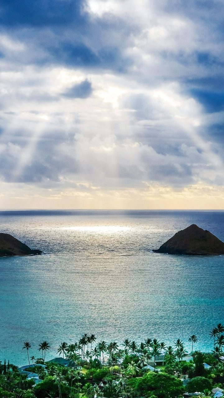 Water sky clouds at Lanikai Beach overlooking the Twin Makulua Islands